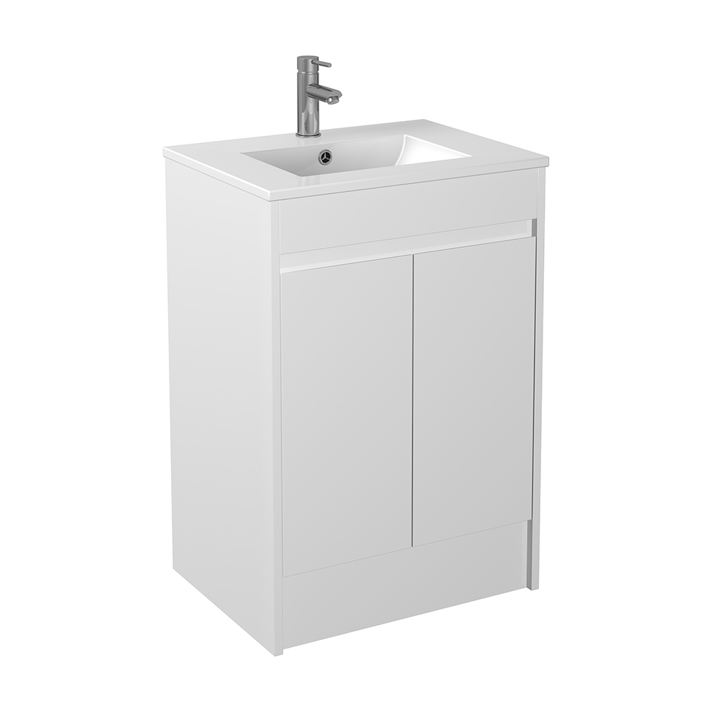 White Polyurethane Kickboard Vanity Soft Closing Doors And Drawers